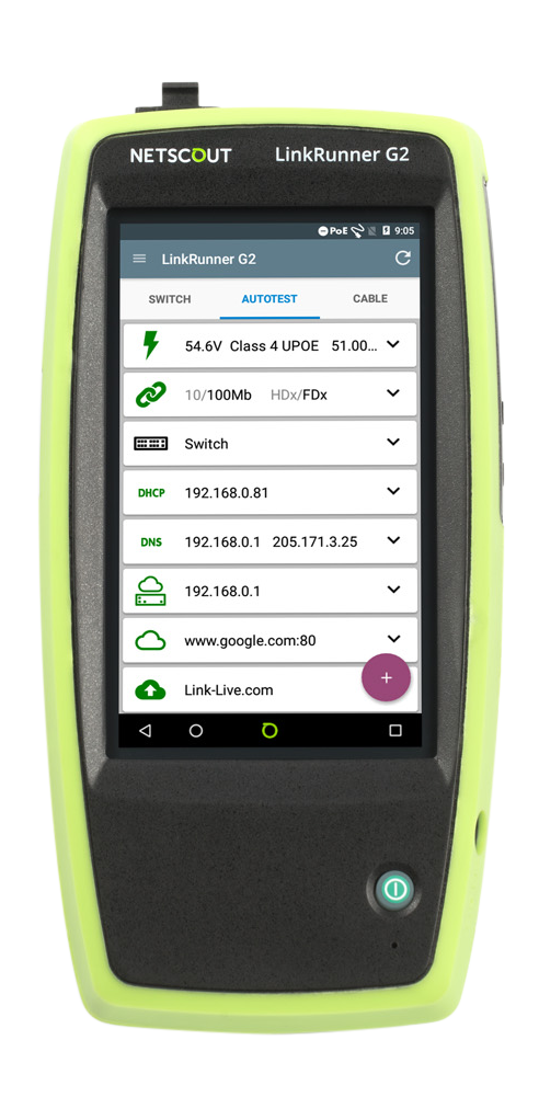 Один из наилучших сетевых тестеров LinkRunner G2 позволяет ИТ-специалистам мгновенно получать важные для них данные. Объединяя возможности тестирования медных и волоконно-оптических сетей Ethernet в операционной системе на базе Android, LinkRunner G2 создает прорыв в сфере анализаторов сетей передачи данных, повышая эффективность и продуктивность работы специалистов, ответственных за устранение неисправностей, а также за внедрение и проверку устройств, подключенных к Ethernet сети.