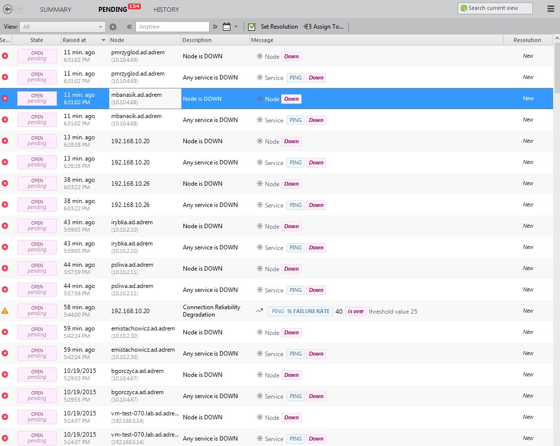 Для того чтобы не сидеть перед экраном и не ловить ошибки в NetCrunch можно задать любые пороговые значения для наиболее важных параметров и своевременно получать уведомления об их превышении.